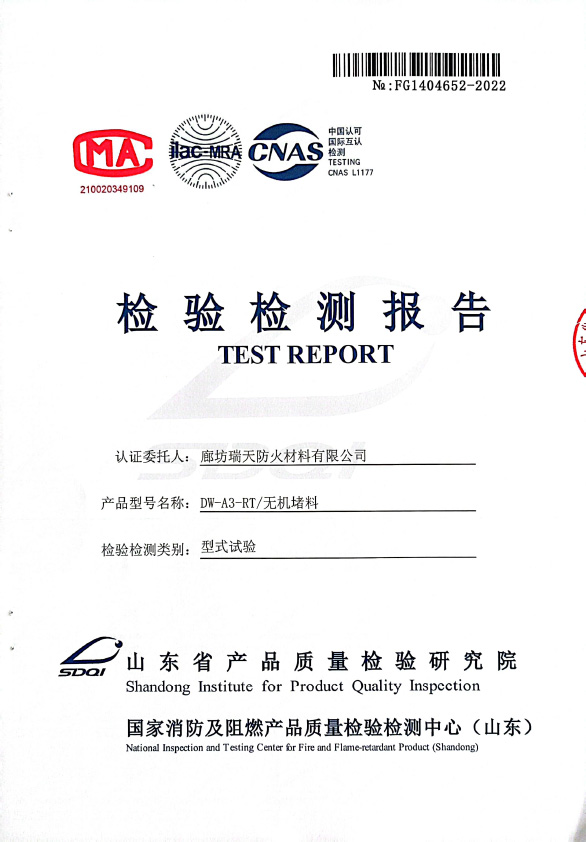 無(wú)機(jī)堵料DW-A3型式試驗(yàn)報(bào)告